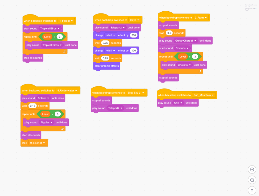 Finally solved the Sounds issue in my Scratch game. What I wanted was for each scene's music to stop when the player levels up. Once the next level loads, a new...