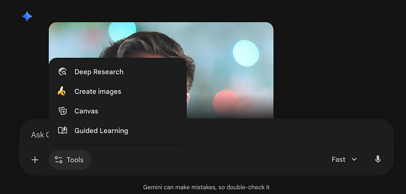 Btw, if you search for "Nano Banana", you'll get a bunch of different links. But if you're already using Gemini as your main AI chat buddy, click on Tools and select 🍌 Create images and you can edit images right there without leaving your conversation.