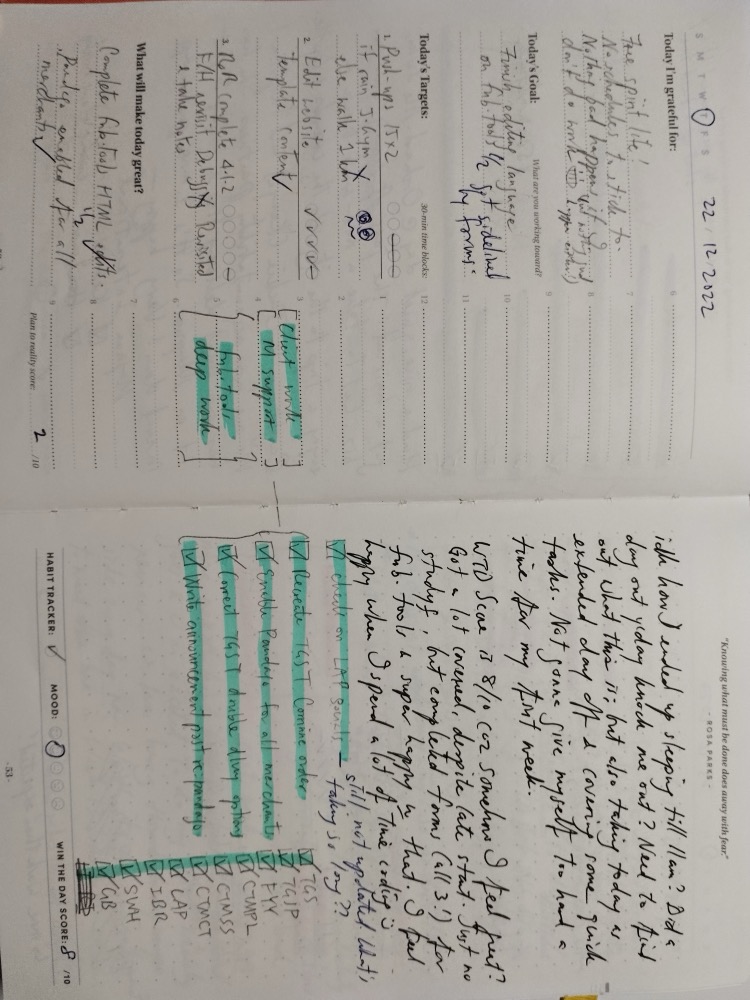 Woke up late because I slept late - that's on me. Tasks got pushed down, time boxes shortened, and some not done at all. But I still did 2 hours deep work on...