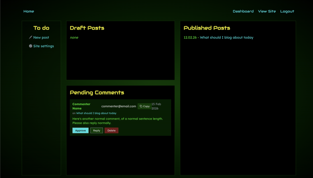 Today I finally have time to tinker on (and deploy!) the Comments system I promised you. Yes, you – DR and WJY, stop nagging. After submitting the form, your...